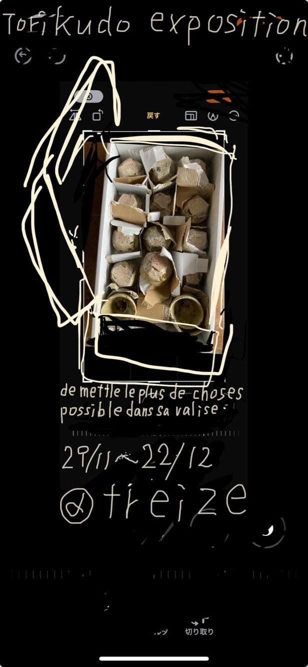 Tout ça pour vous dire que ça faisait longtemps qu’on voulait inviter Tori Kudo à Treize. Jusqu’au jour où Guy Mercier, patron du label Bruit Direct, croisé dans une manif contre la réforme des retraites, m'a proposé d’organiser une exposition de Tori Kudo à l’occasion de la sortie du double LP « Studio Village Hototoguiss 2007-2022 » (2024) édité en collaboration avec Archeion. Kayo Makino, fondatrice de ce label japonais, a atterri un jour à Treize avec une valise remplie de choses. C’est ainsi que nous avons découvert que Tori Kudo produisait aussi des céramiques chez lui depuis les années 2000. Kudo a grandi dans l'atelier de céramique de son père, un peintre d'art informel devenu artisan, pratiquant la technique du Tobe-yaki. La céramique de Tobe est produite dans la préfecture d'Ehime, la ville natale de Kudo, depuis la fin du XVIIIe siècle et est connue pour ses motifs indigo distinctifs réalisés sur une porcelaine d'un blanc éclatant. Dans les mains de Kudo, cette tradition est honorée, déformée et élargie. Comme la musique, la céramique est un art de la fusion qui entrelace l’histoire collective, des souvenirs intimes, la tradition, une connaissance technique, des références culturelles et des accidents féconds. « Je ne suis pas un bon potier », a affirmé Tori Kudo lors d’un interview. Est-ce de la modestie, fausse ou vrai ? Peut-être qu’une bonne céramique ne doit pas être faite par un bon potier, après tout, puisque c'est par les accidents qu'elle se charge d'histoires. Et peut-être qu’il vaut mieux qu’une bonne mélodie soit jouée par un.e punk...
