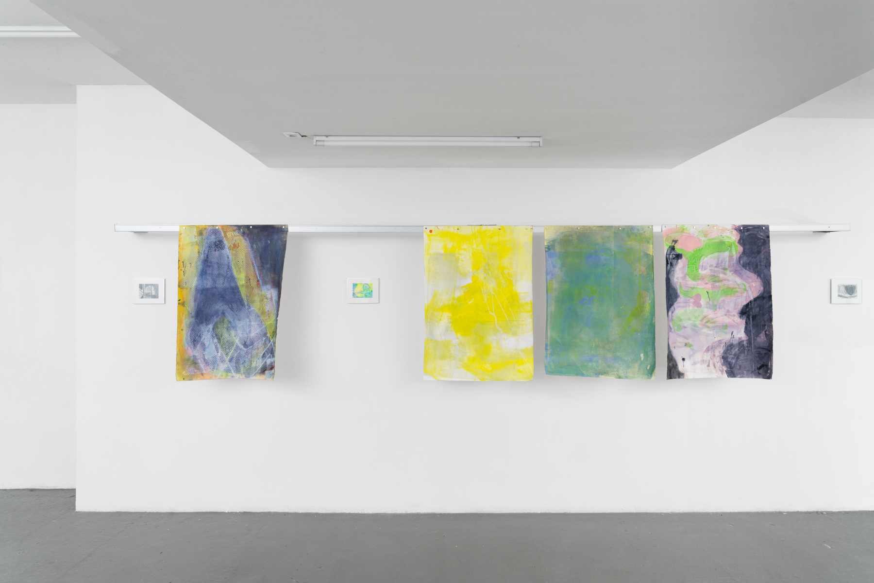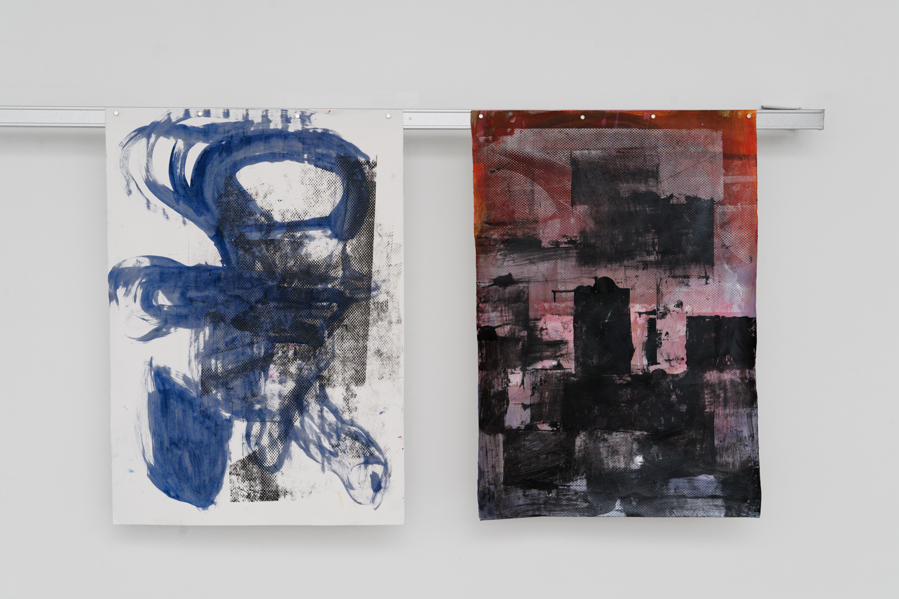 Artiste franco-libanais basé à Marseille, Basile Ghosn(né en 1991) recourt habituellement à la sérigraphie comme outil d’enquête sur l’imaginaire utopique moderniste. Il privilégie l’appropriation d’images par l’emploi de photocopieuses de bureau et de papier de qualité standard pour en tirer des paysages composites faits de détails architecturaux – rampes, pilotis, terrasses et poutres métalliques – qu’il enchâsse entre des couches de plexiglas coloré. Ses compositions semblent autant de monuments ambigus au souvenir d’un International Style ensoleillé, insouciant et sain, qui devait s’étaler le long des rives de la Méditerranée. On n’y distingue personne d’autre que soi-même – et parfois les autres regardeur·se·s – dans le reflet séducteur des surfaces.